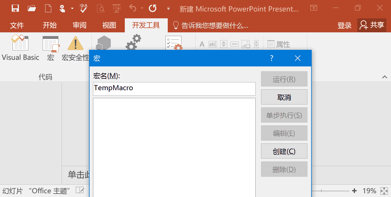 点击选项卡上的 开发工具 > 宏,随便取个名字并创建。